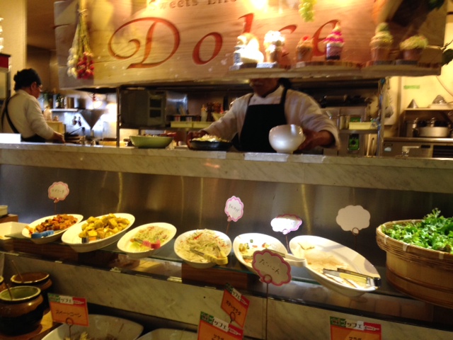 ピザとパスタはオーダー制で食べ放題、サラダ、オードブル、だけでなく、和風のお惣菜やカレー、おそばまであったのには驚きでした。