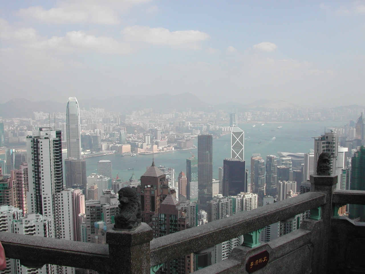 尖沙咀のウォータフロント、ビクトリアハーバーの海沿いにあるプロムナードから見ました。