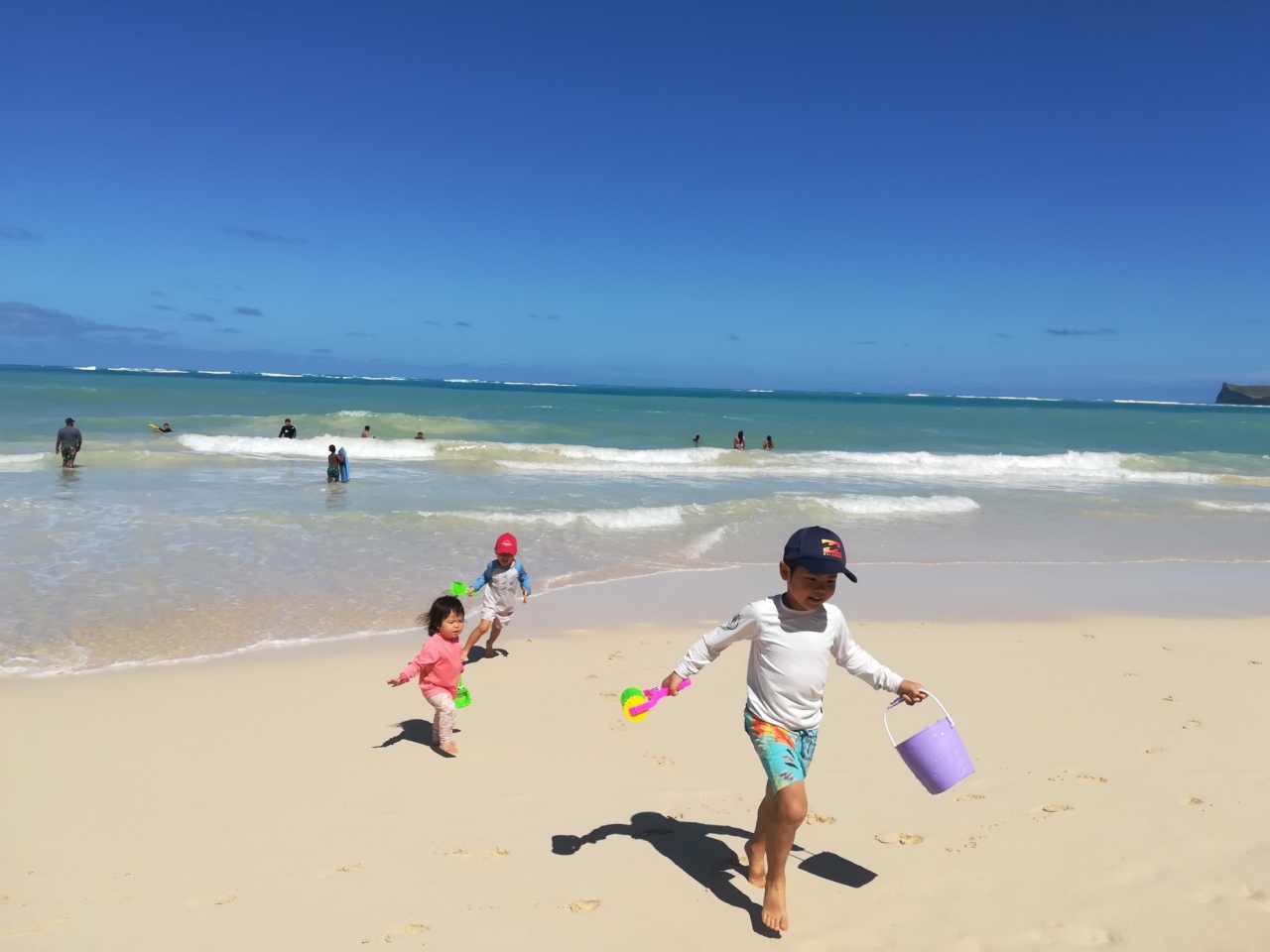 駐車場からビーチが近くて荷物はこびにも便利。びっくりするほどすいていて、私たちともう一組の家族だけというプライベート感満載です。