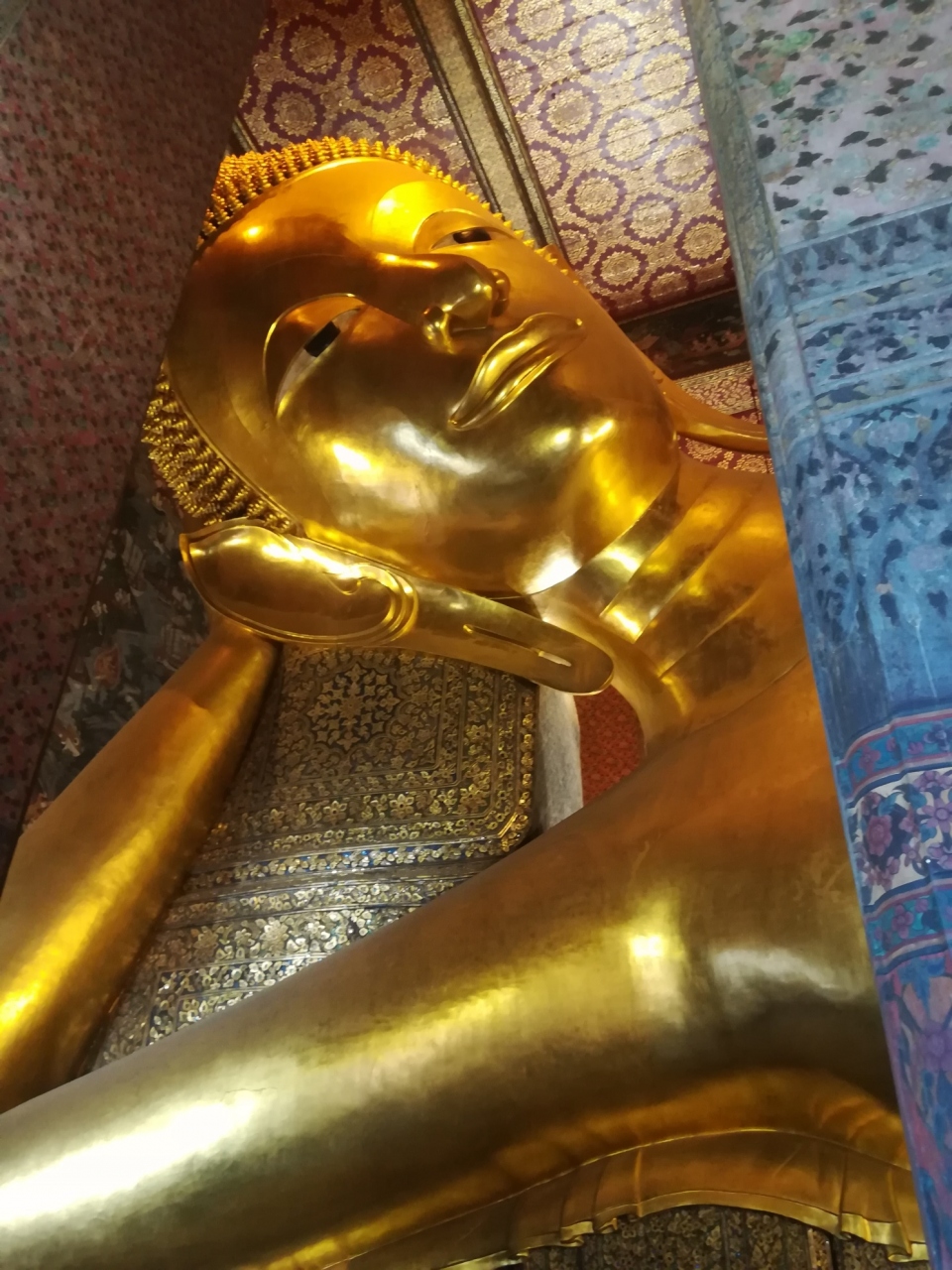 ここはなんといっても涅槃仏が迫力。自分でいくと心ゆくまでゆっくり見ることができました。裏へまわると20バーツをコインに交換して1枚ずつへ願い事をしながらボウルへ入れていきます。