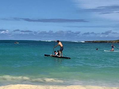向かいの島までサップで行く途中、子どもたちはウミガメを見ることができ、大興奮でした。魚もいろいろサップの上からでも見ることができました。