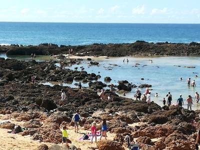 たくさんお魚がいるようです。岩だらけで足場が悪いので裸足では歩けません。ノースの波を見たい大人たちに反し、遊びたい子どもたちにはうってつけのビーチでした。