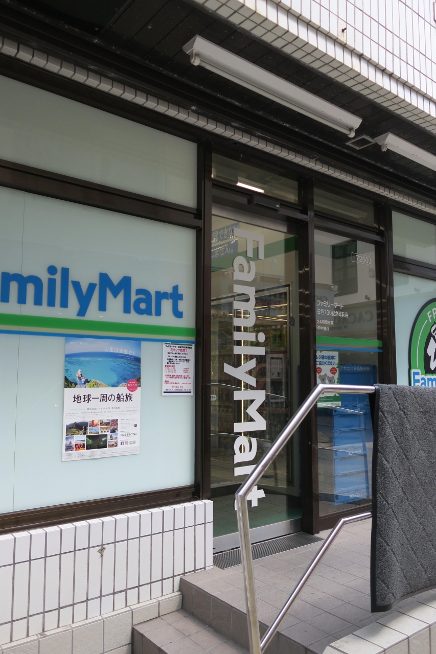 離島ターミナルから歩いて5-6分のところにある730交差点のわきにあるファミリーマートです。