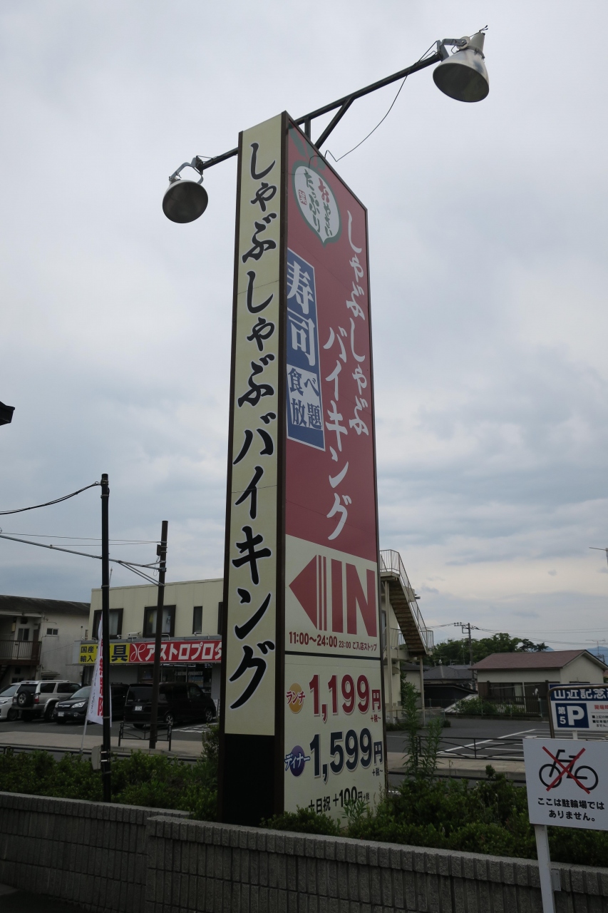 国道1号線で、国府津駅から車で5分ほどにしに行ったところにあるしゃぶしゃぶのファミレスです。他のレストランと共通の広い駐車場があります。