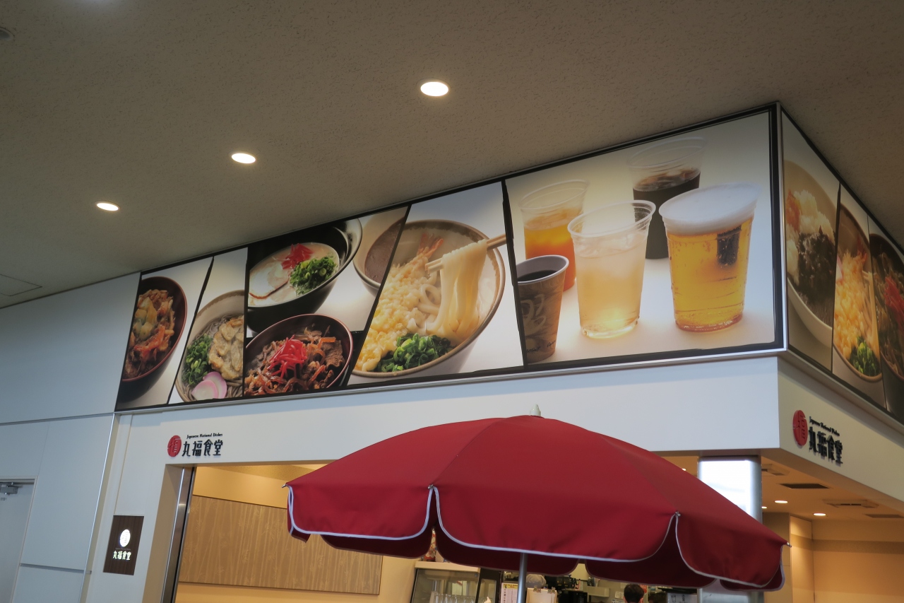 鹿児島空港国内線ターミナルで、保安検査後のエリアにある、軽食コーナーです。セルフサービスだし、味がすばらしいというわけでもありませんが、奥のカウンター席からは飛行機を間近に見ることができ、搭乗までのんびりするのに最適な場所だと思います。