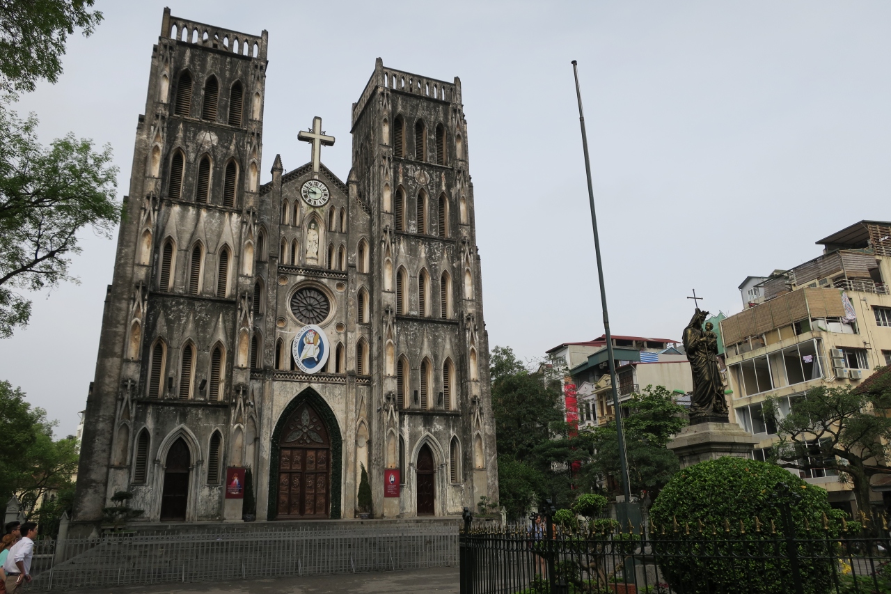 雑踏ともいえるハノイの旧市街の中で,この大教会(セント ジョセフ教会)の灰色の建物,そして真ん中の十字架は,落ち着いた雰囲気を醸し出しています.