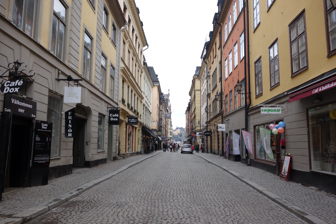 ストックホルムの中心(セルゲル広場や中央駅など)からほど近いところにある旧市街です.中世の趣を残しているといった感じがしました.