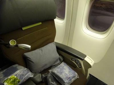 エコノミークラスの予約でしたが,成田空港でコンフォートクラスにアップグレードしてもらいました.わずかな追加料金で,まるで(少し前の)ビジネスクラスのようなシートに感激しました.