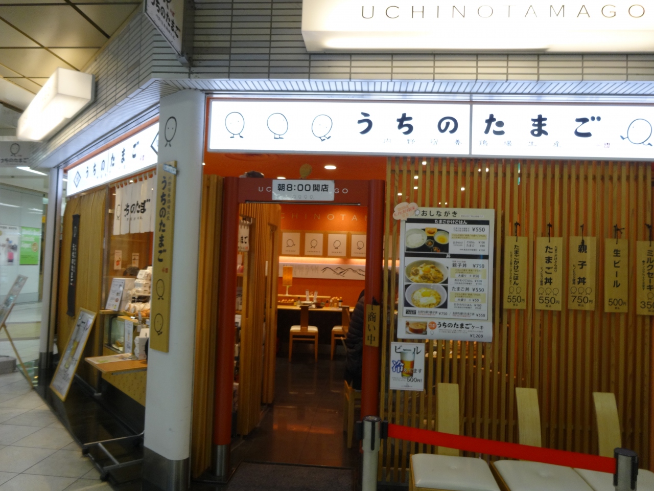 羽田空港第1ターミナル地下の真ん中あたり,ドトールコーヒーショップの隣にあります.たまごかけごはん550円や,親子丼750円など,素朴な卵料理のメニューで,ほっとした感じがします.持ち帰りもできるので,機内で食べるのも可能です.