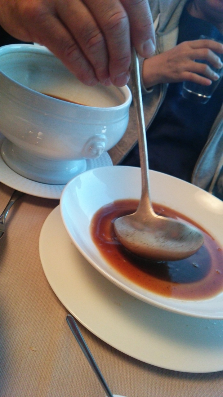 本場のブイヤーベースは、スープだけが出てきてルイユというにんにくソースをフランスパンにつけて浸して食べます。