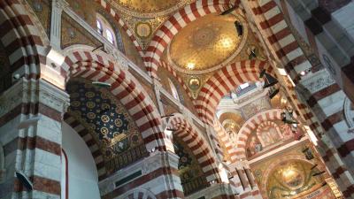 中は、ステンドグラスや壁画がとても素晴らしく、金ぴかです。