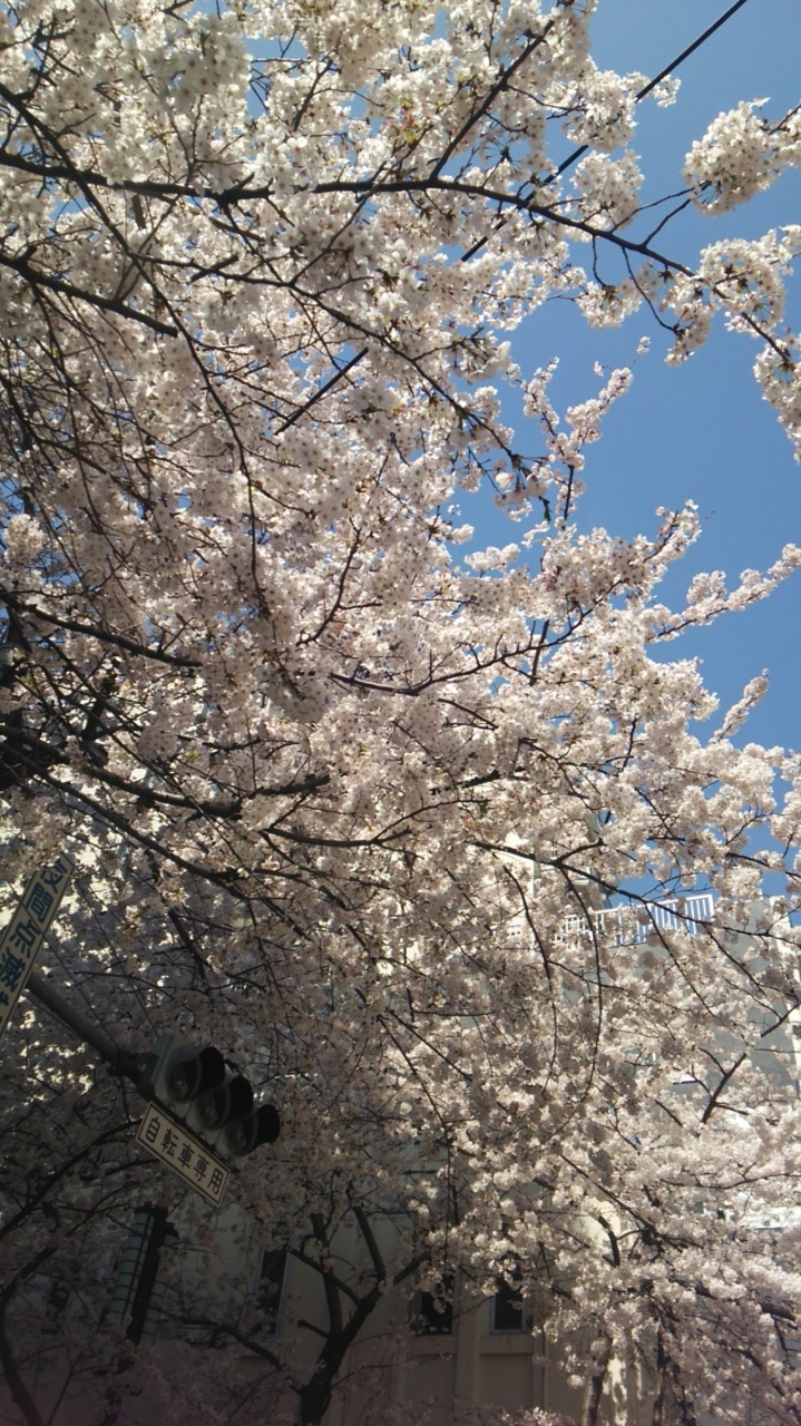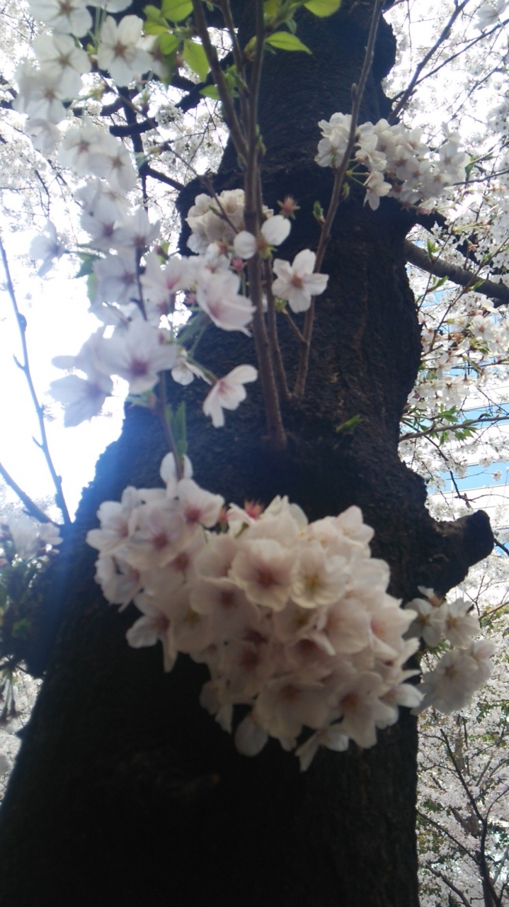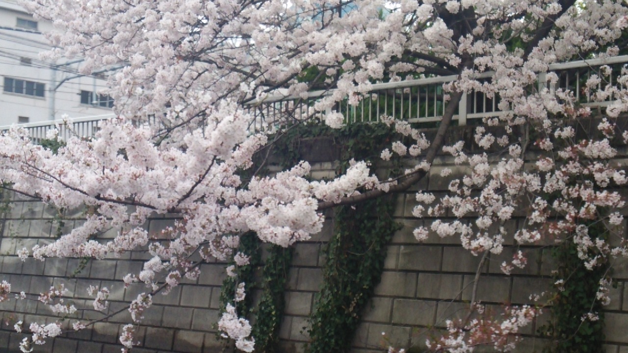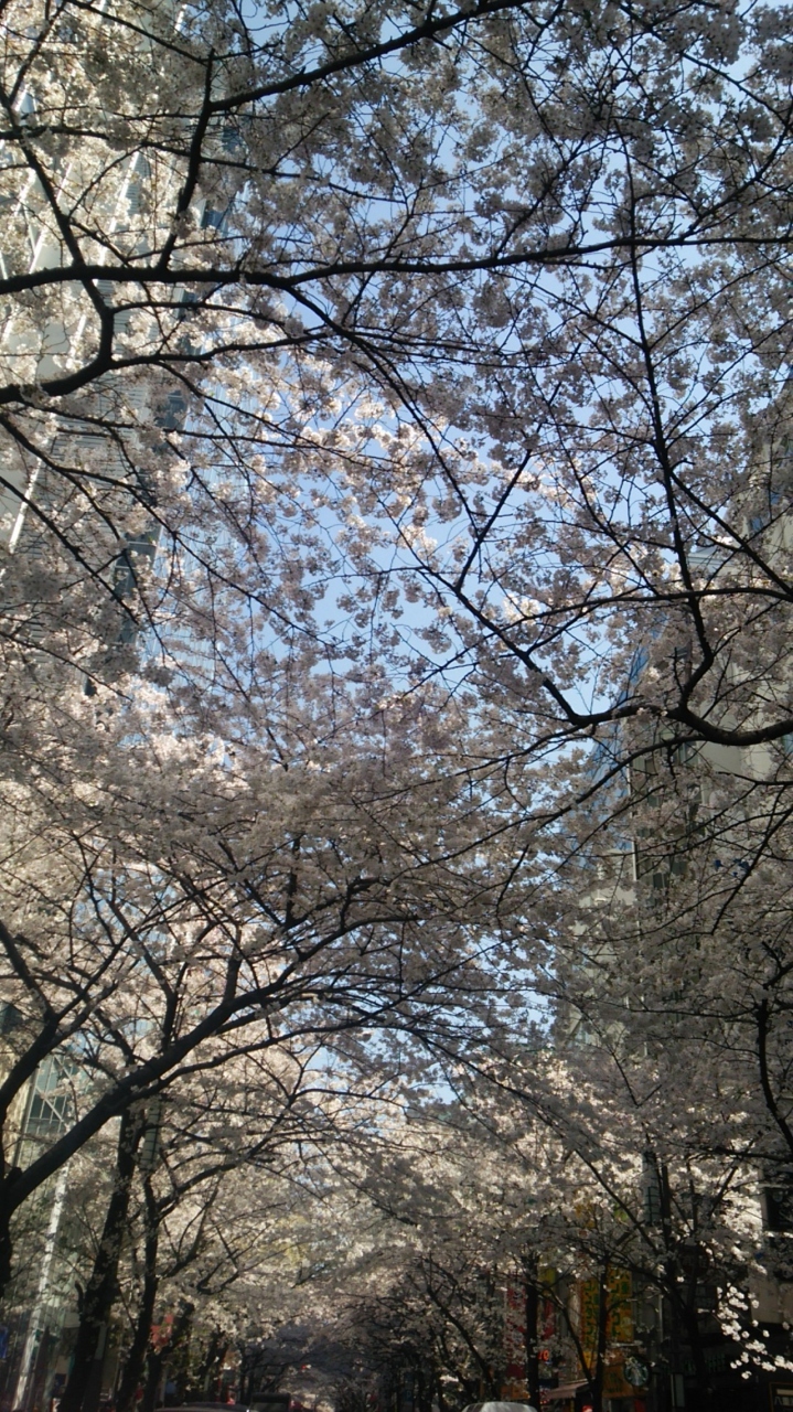 車道も歩道も狭いので、左右の桜に囲まれ、桜のアーチです。