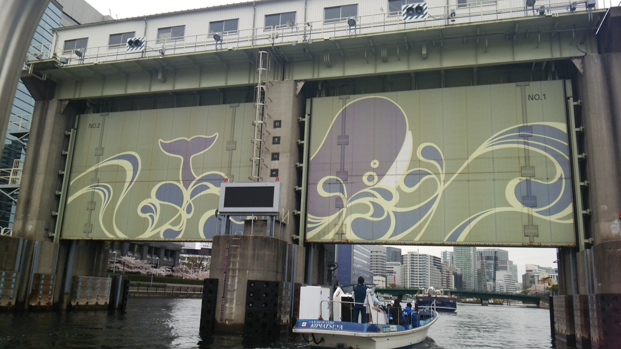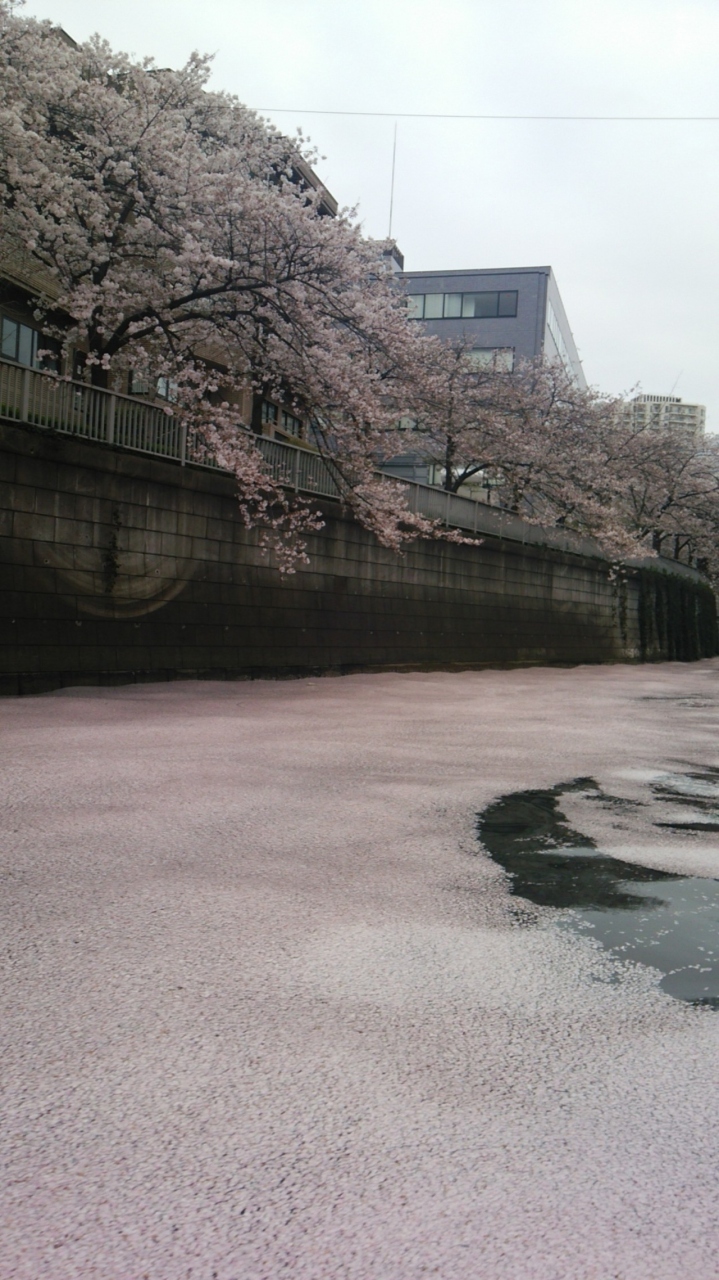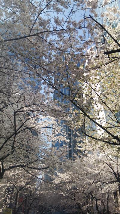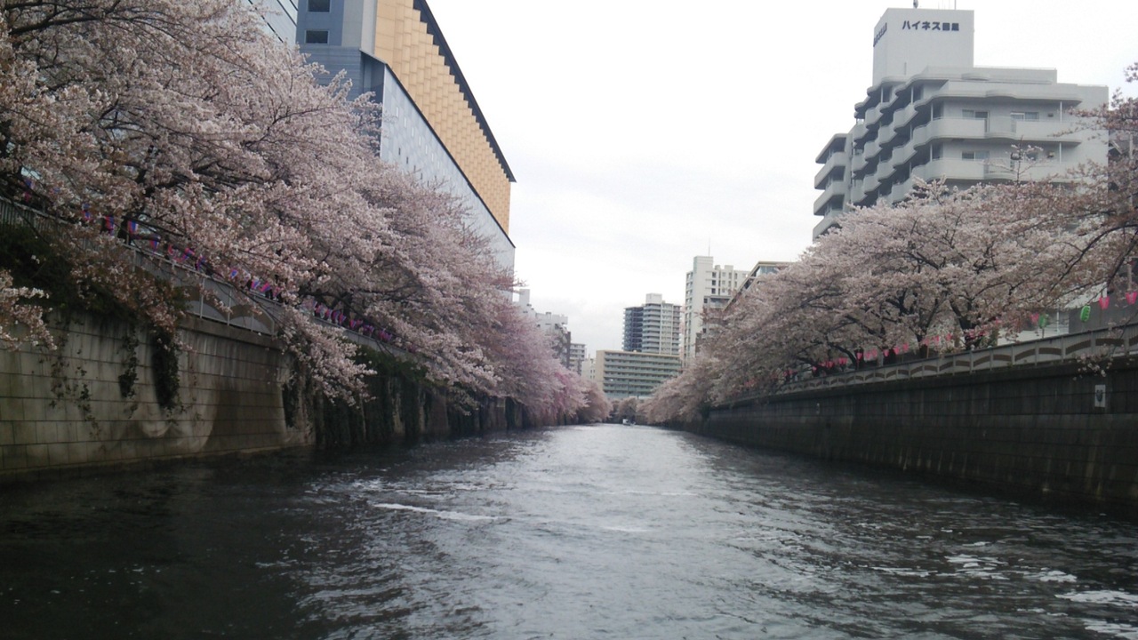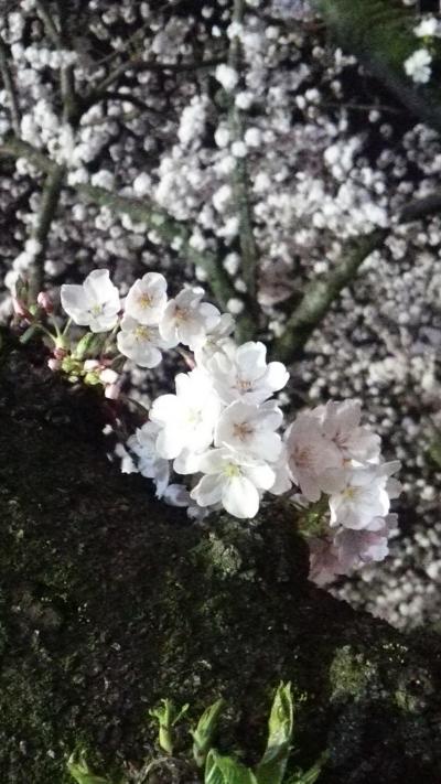 車道も歩道も狭いので、左右の桜に囲まれ、桜のアーチです。
