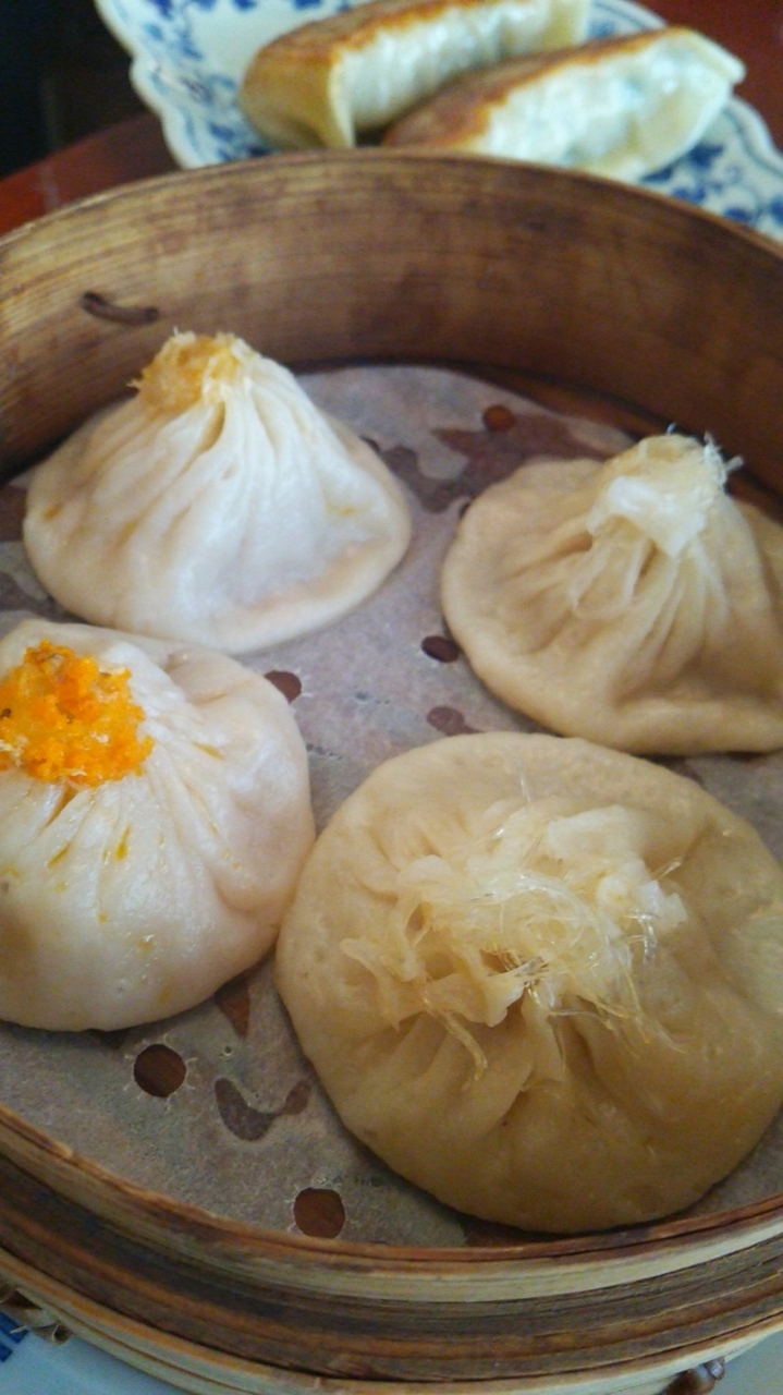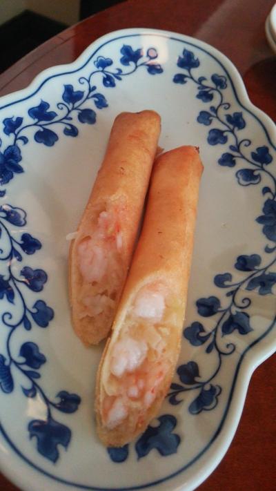 飲茶は、海老春巻き、餃子、フカヒレ小籠包、かに小籠包、海老にら饅頭。