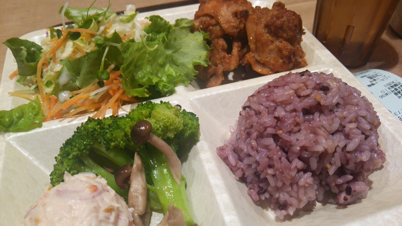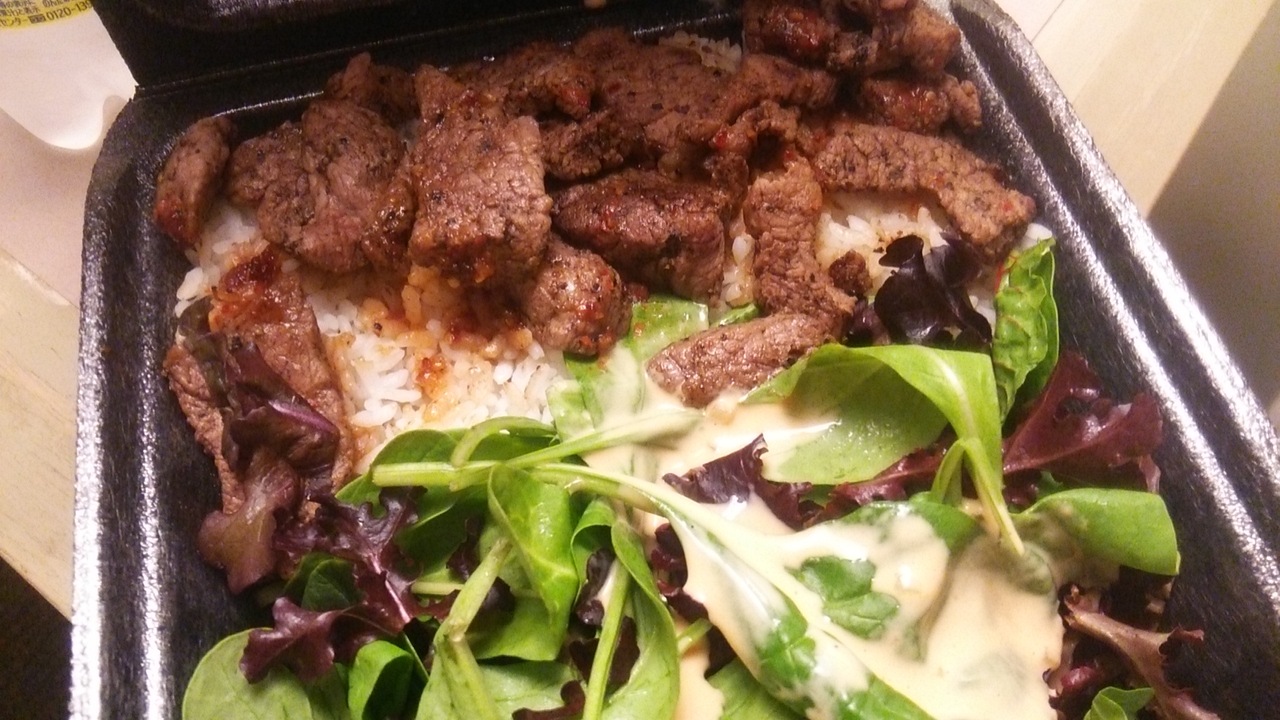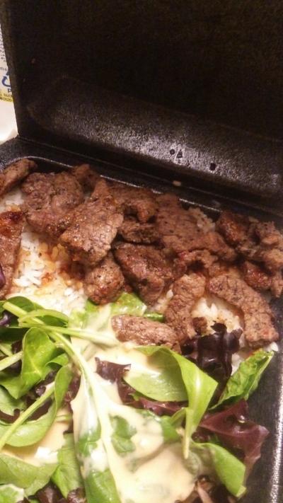 テイクアウトのみのお店で、サラダとライスがつきます。