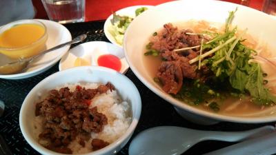 牛肉のフォーで、ミニガッパオとサラダ、マンゴープリンが、ついてきます。