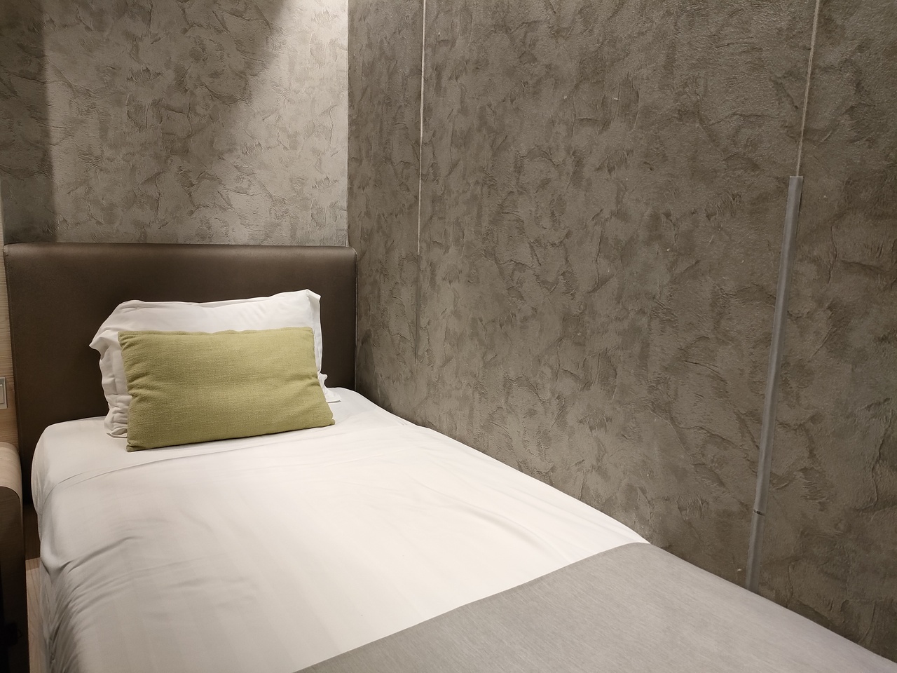 部屋は、手狭ですが、高さのあるベッドの下にスーツケースが収納できるなどかなりコンパクトに設計されてます。