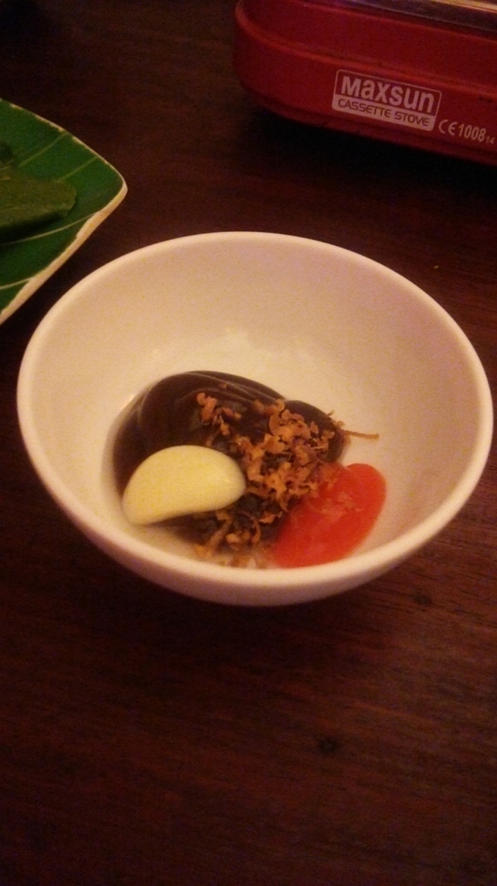 味噌みたいなのと、ニンニク、レモングラス、スパイシーソースをお好みで、作るのです。
