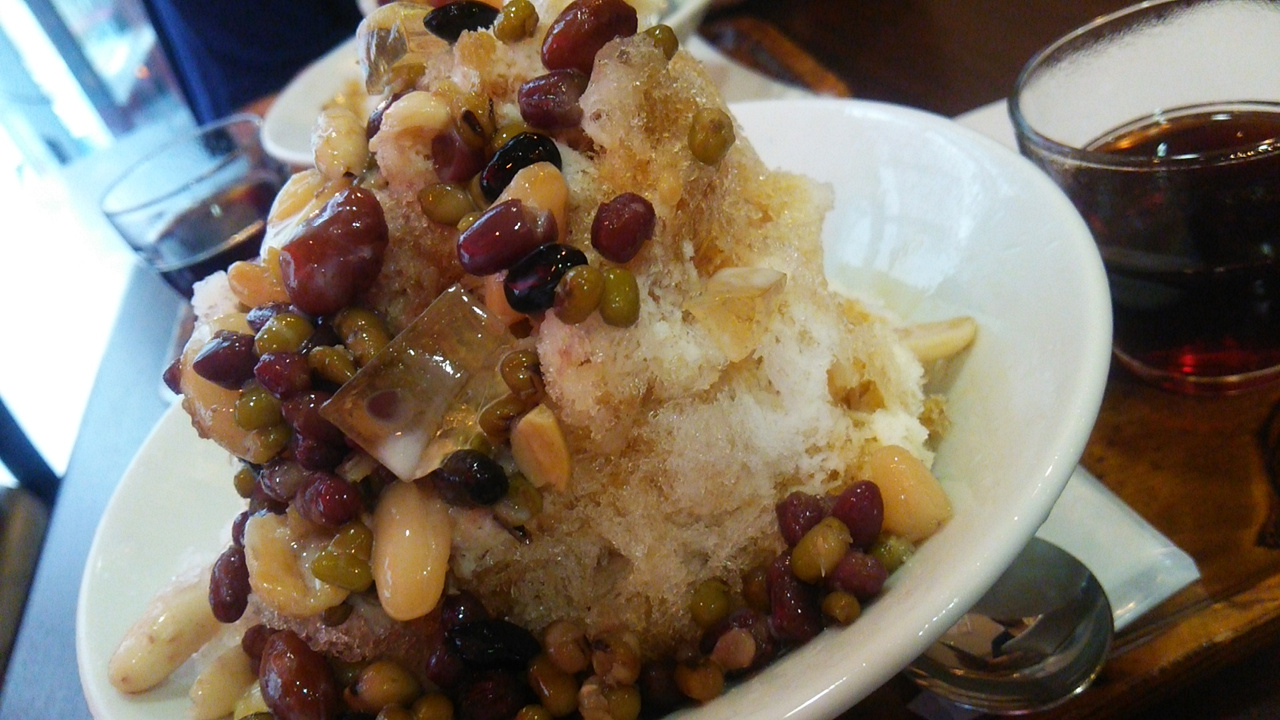 いろんな種類の豆がたくさん乗ってて甘くないから、食べやすい。氷のシャリシャリ感とのバランスがいい。