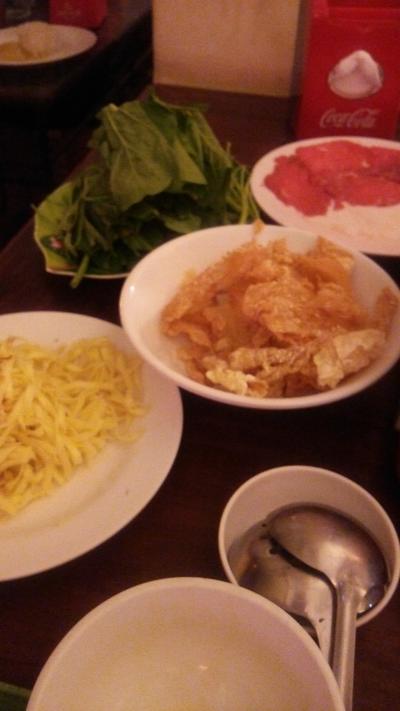 あと、お皿に載った牛肉の上から、溶いた生卵をかけてから、鍋に入れてました。