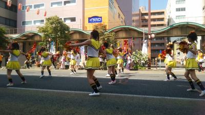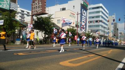 国道50号が通行上となり、山車、お神輿のパレード、市内、県内の小中学校の音楽隊パレード、チアパレードなど、盛りだくさんでした。