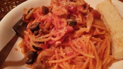 生パスタは、もちもちしてて、味つけもいい。