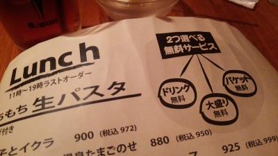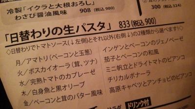 日替り生パスタは、税込\900で、2種類から選択。