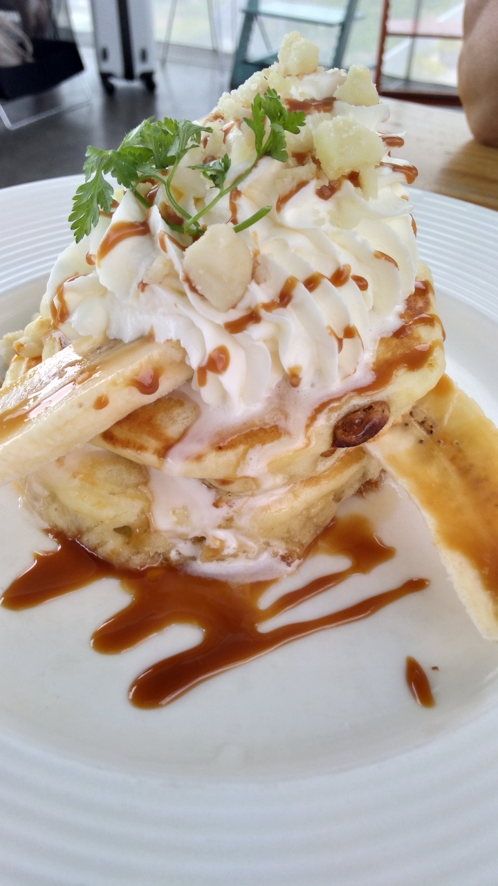 肝心の味ですが、オリジナルパンケーキとキャラメルバナナパンケーキをオーダーしましたが味はいたって普通。よくあるパンケーキです。