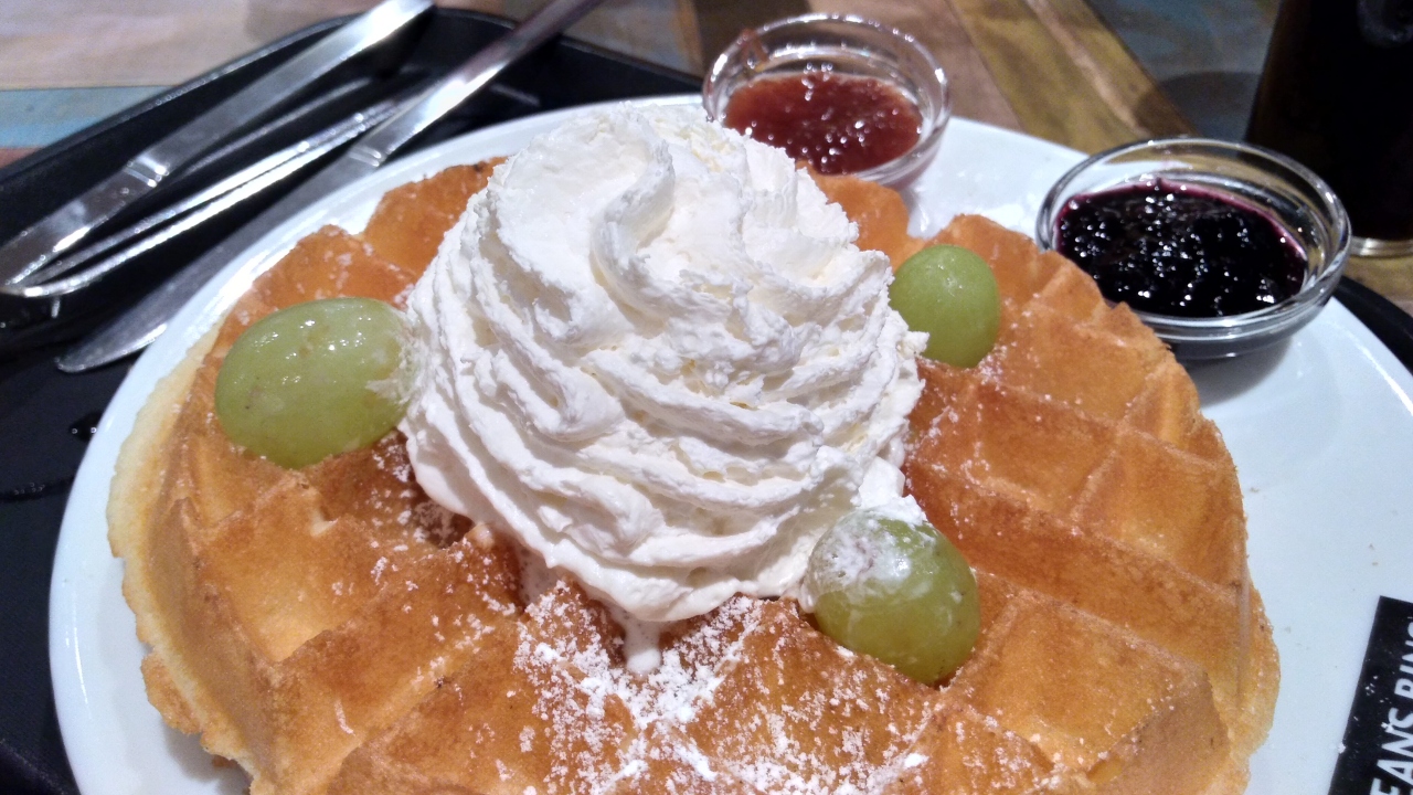 ワッフルは、好みもありますが食感がいまいちでした。量も多いのでシェアして食べたほうがいいです。