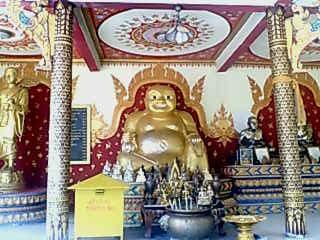 場所を移動して、違う仏像をみる。ピンク色。ここらで、オヤジが妙に車内で...