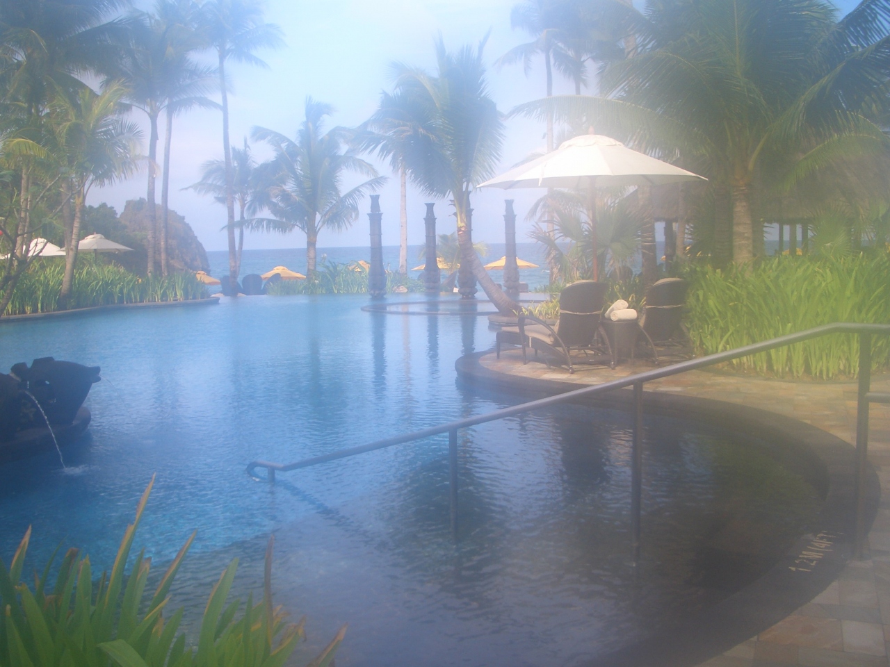 それからリゾートホテルに欠かせないプールだが、これまた非常にポイントが高い。清潔で手入れの届いたプールサイドは見るだけで美しく、またプールに入っても楽しく(すぐそこが本当の海!)、ゲストの視点を追求したすばらしいスポットだった!!ただゴーグルみたいのを借りようとしたら、やたら高い値段だったので諦めたのはちょっと残念。。でも仕方ないか、高級リゾートだからね。ちなみにホテル目の前の海は、透明度が高くとってもキレイ!しかもプライベートビーチみたいになってるから人も多くないし騒がしくなく、静かに楽しむには最適!