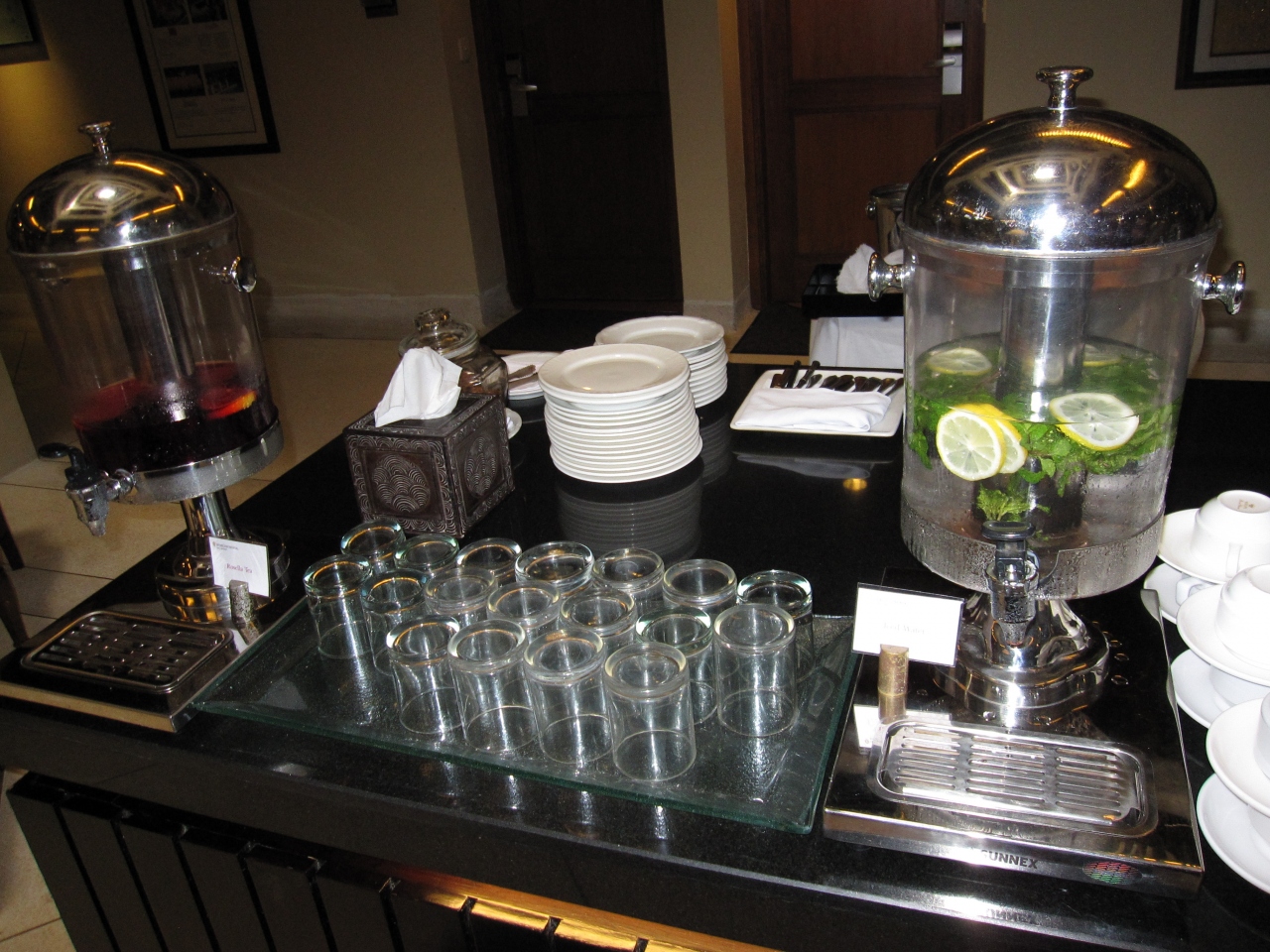 シンガラジャルームの宿泊者は簡素なラウンジの利用が可能なのだが、便利なのでちょっと一息付きたい時に毎回利用させて頂いた。ラウンジといっても優雅なお部屋ではなく、吹き抜けの空間にドリンク類(コーヒー、カプチーノ、紅茶、ジュース、水等)、クッキー、ドライフルーツ等のおつまみコーナー、あと4つ程のテーブル&チェアが設置されているのみ。でもここのコンシェルジュのスタッフは皆、フレンドリーかつ過剰過ぎない気遣いで大変気持ち良く過ごせた。難を言うなれば、もうすこしスナック類が充実しているとよかったかなぁ~。