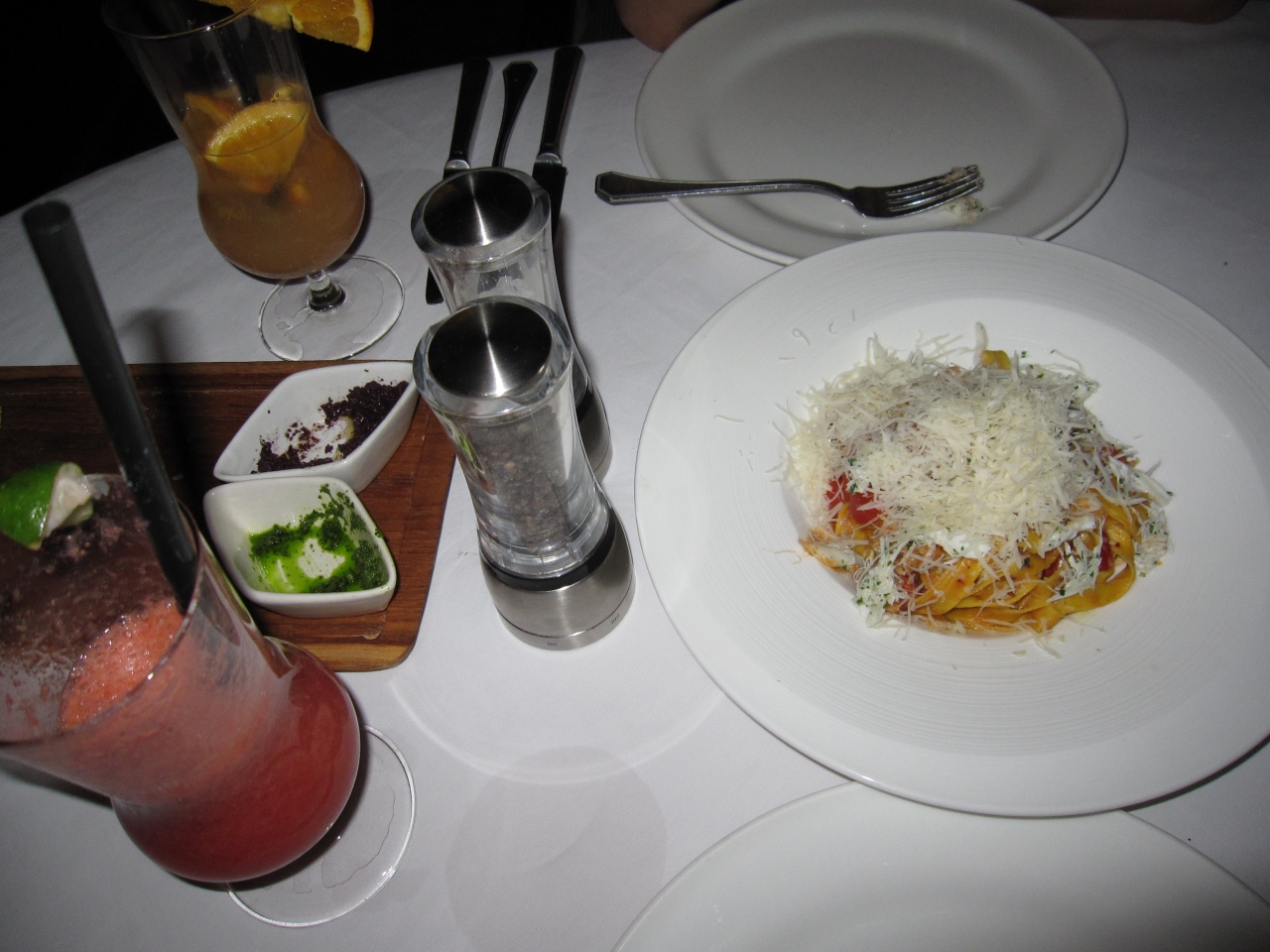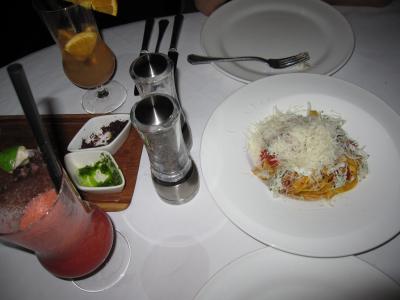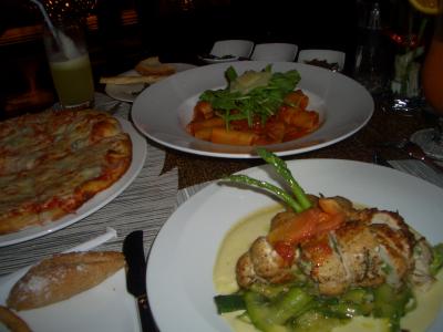 滞在中2か所のレストラン(イタリアン&和食)に行ったが、どちらもお味よし、レストランの雰囲気よし、サービスよしで大満足だった。イタリアンレストランでは夜になると、1席ごとにキャンドルを灯してくれ、雰囲気抜群の中、海の幸満点のパスタやお肉を堪能できる。お料理に付いてくるパンもとっても美味。またカクテルもフルーティーで女性でも飲みやすくアレンジされているのでオススメ。
