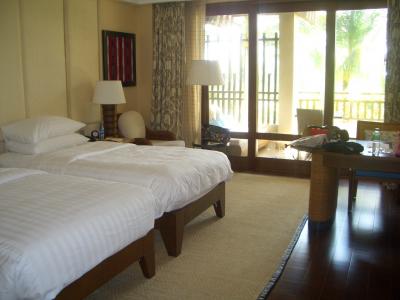 お部屋は広々していて解放感もそれなりにあった。しかし残念なのがベッド周り。なぜか毎度、シーツが湿った感じで気持ち悪い。神経質な人は気になるかも。ちなみに宿泊した部屋は海沿いでもプール沿いでもなかったのだが・・・。またベッドカバーやソファーカバーの汚れやシミが若干気になった。長年、取り替えてないんだろうな~と思わせる年季の入りよう。ホテルに清潔感は超大事よね。