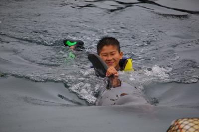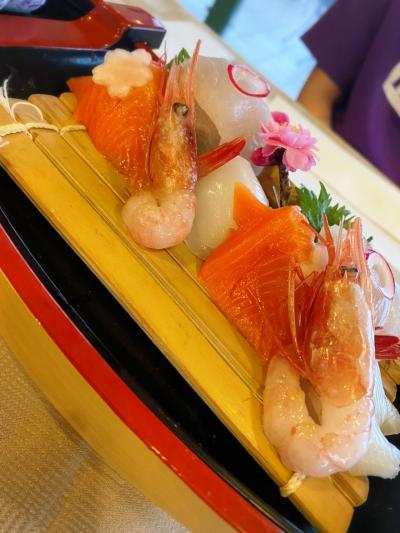 子供達は 黒潮市場でのマグロ寿司& ポルトヨーロッパでの