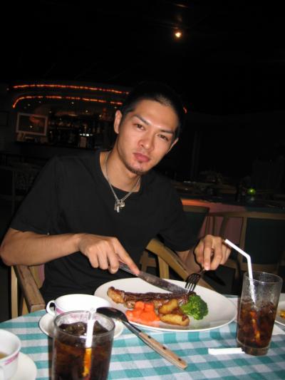 ニッコーで宿泊挙式をした私達はポラロイドで写真撮影してくれました。 皆シーサイドバーベキューに凄く並んでいたみたいだけど ここの方がお肉柔らかくてジューシー。 ちょっと残念はステーキソースが瓶入りだったこと。市販かぃ?って思ったもん。私はレアで塩コショウだけで美味しかった。 サラダの所の和風っぽいドレッシングで食べるとさっぱりだった。