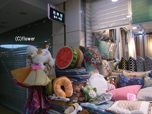 キューイ・スイカ・オレンジのクッションが10000ウォンで