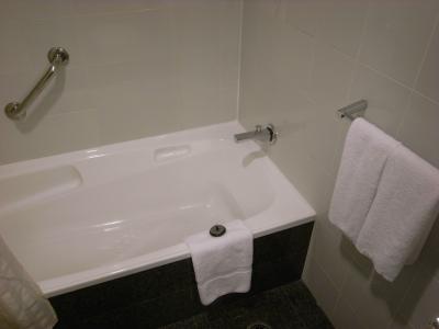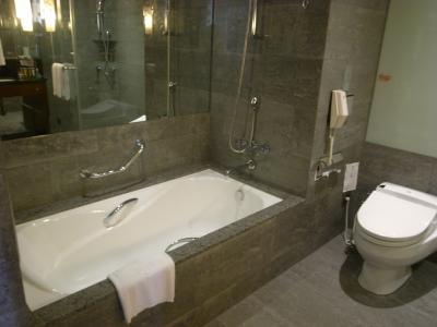 トイレはウォシュレット付きで、シャワーブースと浴槽も有。