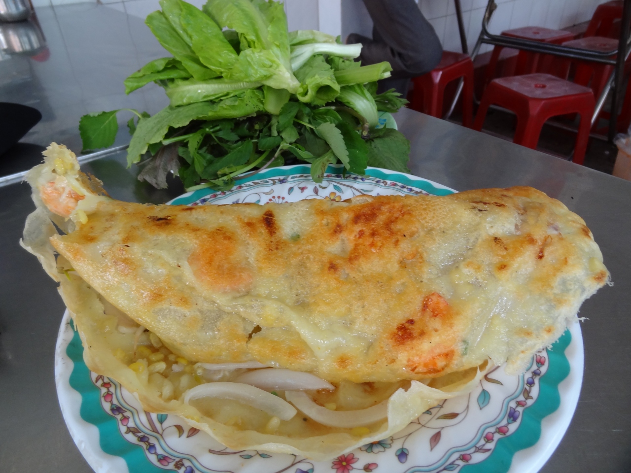 小さな路地の奥にあるお店ですが、ここのバインセオはとてもおいしいです。