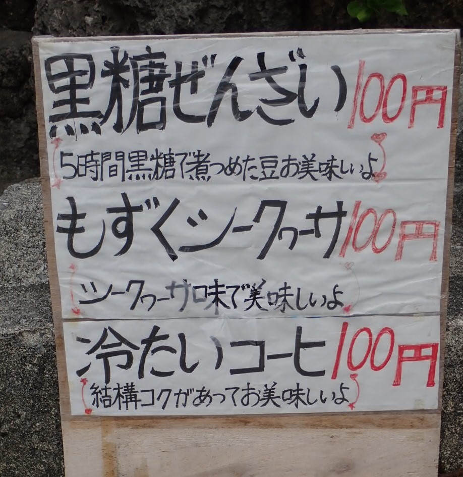 そこでおばちゃん手作りの黒糖ぜんざいをいただく