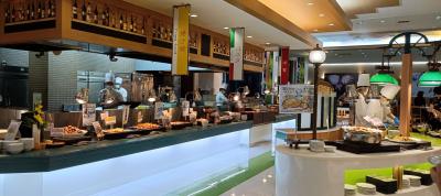 食事は種類豊富でライブキッチンで様々な食事が味わえます。