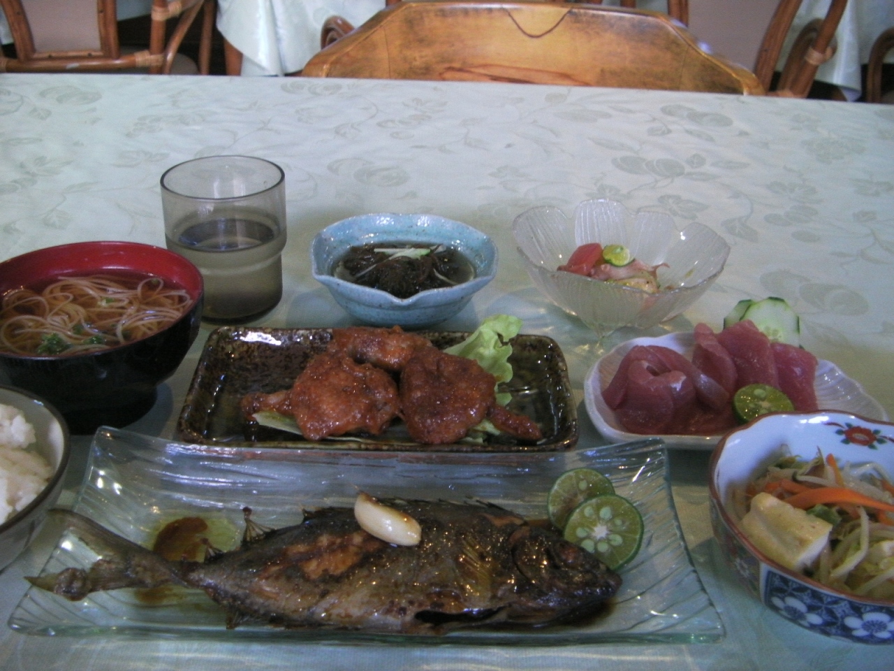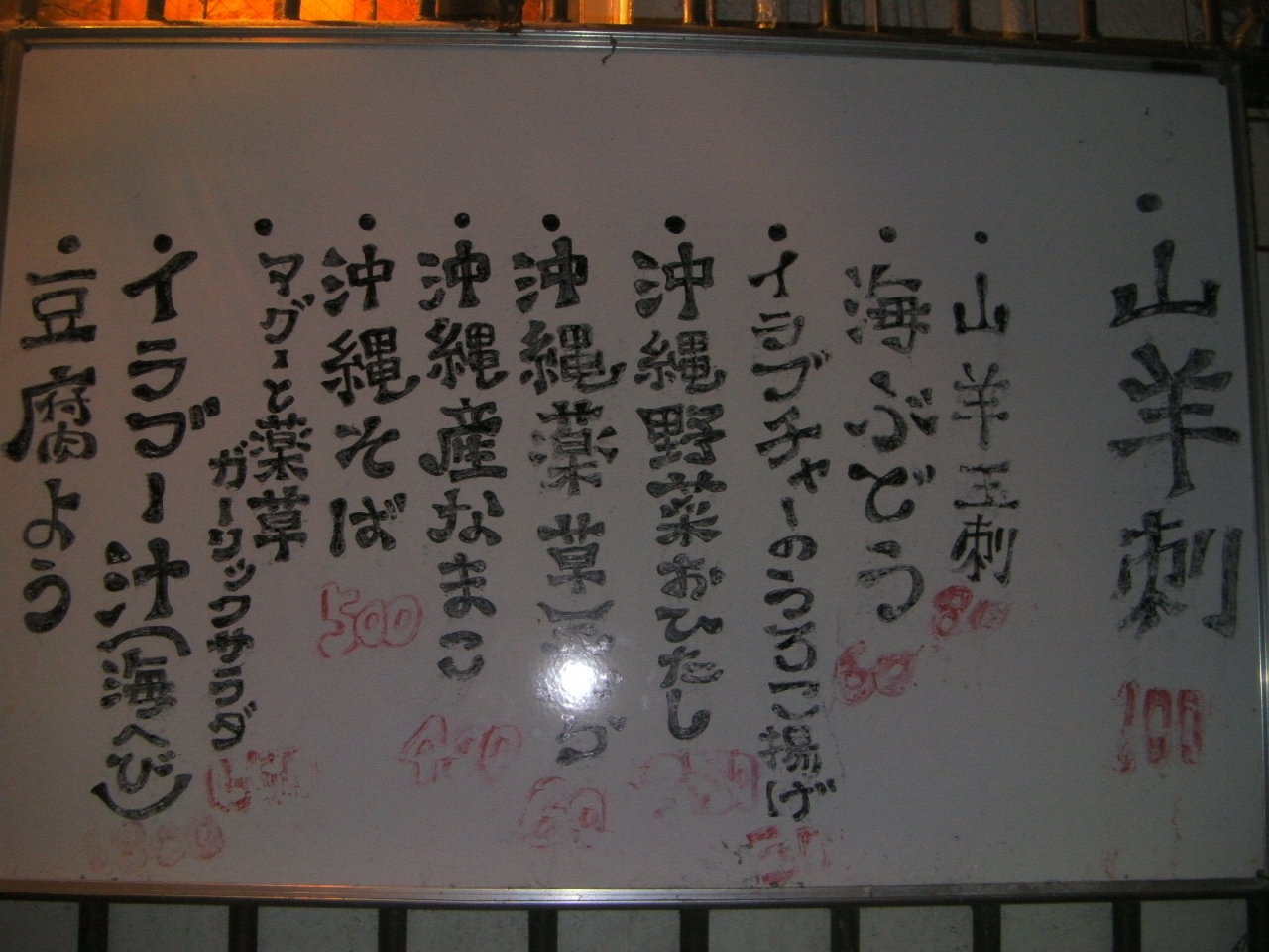 沖縄に行く前からイラブ―(ウミヘビ)汁が気になって何店か調べてから伺ったのですが、イラブ―汁に限らず、山羊刺しやマンボウ刺しなど珍しい料理がたくさんあり、しかもお値段もお手頃だったのでかなりにぎわっておりました。