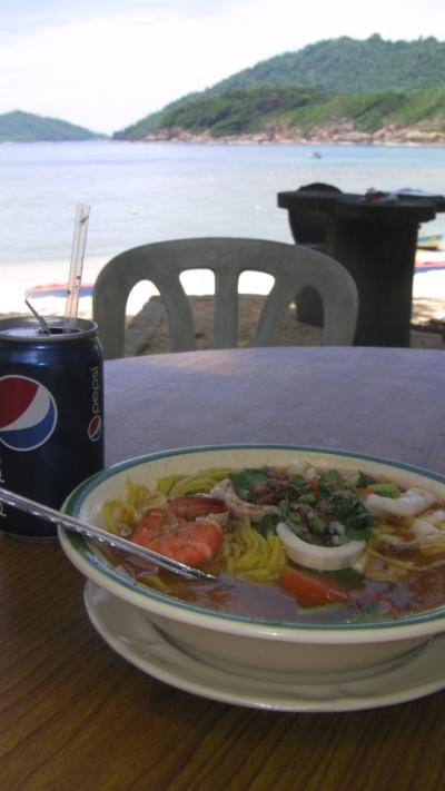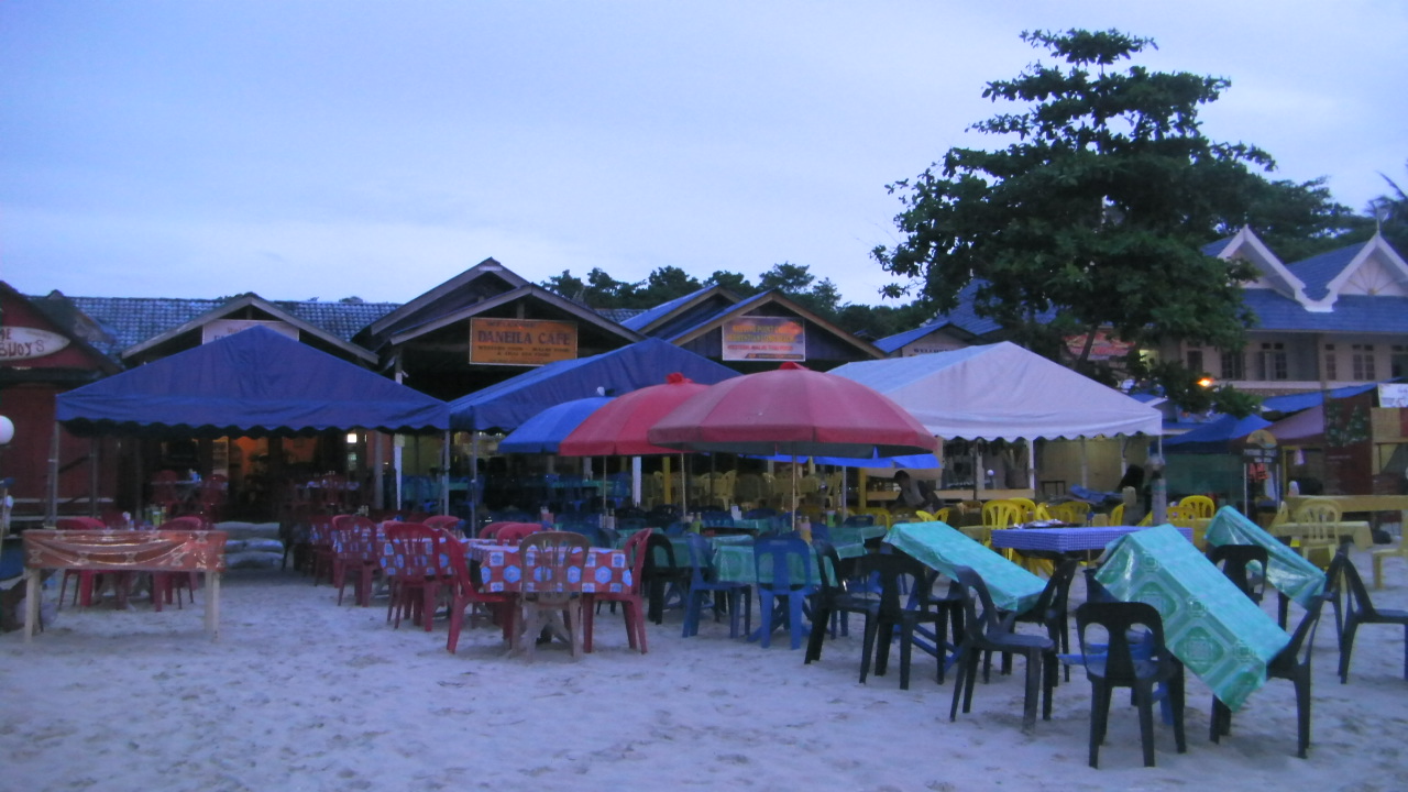 ただ部屋は扇風機のみでスコールがない夜は蒸し暑く、夜はシャレーのレストランで大音量でマレー歌謡が延々と流れていたり、地元の若者が夜中2時近くまでベランダで語っていたのでi podなどがないとキツイかもしれません。 いくらオーシャンビューでも1泊120RM(4080円)は正直高かったかなと思います。