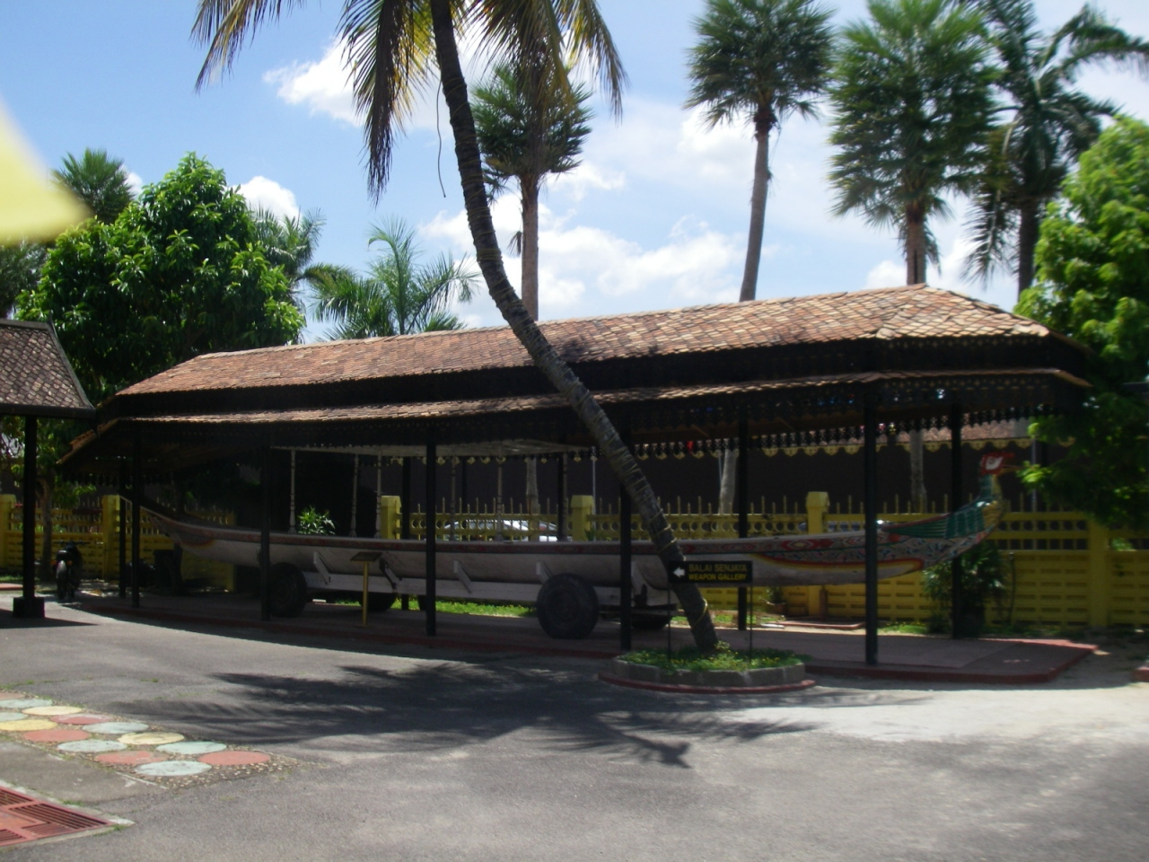 屋外には伝統的な船が飾られていて、この船のすぐそばに昔の武器を展示したウエポンギャラリーがあります。