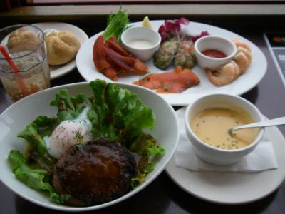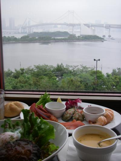 イベントの帰りに寄りました。ダンナはチーズバーガーセット、私はコブサラダを頂きました♪ 窓からはレインボーブリッジや東京タワーを見る事ができろので天気のイイ日の見晴はとても良いと思います!