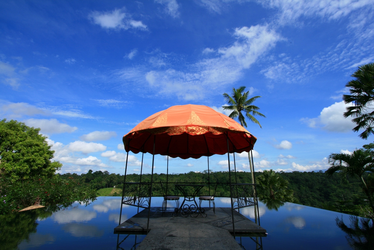 デンパサール国際空港から車で1時間半の、ウブドの奥に佇む高級リゾートです。日本から深夜の到着の疲れを癒してくれる、素敵なレセプションで出迎えられました。部屋も天蓋ベッドに雰囲気溢れる調度品、十分過ぎる広さのバスタブ、バルコニーから眺める山の景色は最高のヒーリングになりました。