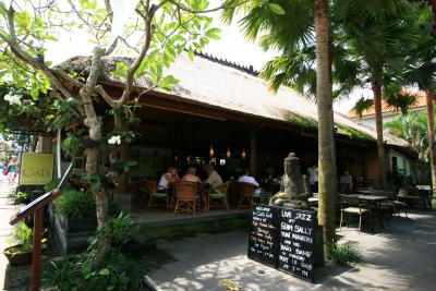 ウブドのモンキーフォレスト通り、カフェ・ワヤンの向かいにあるレストランです。夫婦でランチに入り、ピザ・パニーニ(44,000Rp.)、ソト・アヤム(42,000Rp.)、ビンタンビールスモール(17,000Rp.)、ライムジュース(21,000Rp.)を注文しました。トータル143,000Rp.(約1,430円)です、安くはない方かもしれませんが、お店の雰囲気も良くメニューも充実(グリル系が人気メニューみたいです)で、外国人が絶えずいました。私の食べたソト・アヤム、鶏でダシを取った、卵や野菜や香草入りのチキンスープですが、めちゃめちゃ美味しかったです!辛さも添えてあるサンバルで調節でき、お腹一杯になる量でした。ハマりそう。。。夜はバーにもなるようです、是非行ってみて下さい。