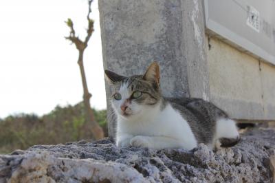 コンドイ浜には猫ちゃんがいっぱいいました。人なつこくて浜に座っていると...