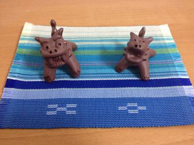 そのミニシーサー♪手のひらサイズでかわいい♪下に敷いてあるミンサー織は...