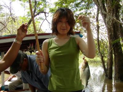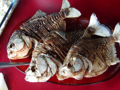 釣ったピラニアを料理にします。白身で小骨が多かったです。アマゾンにはお...